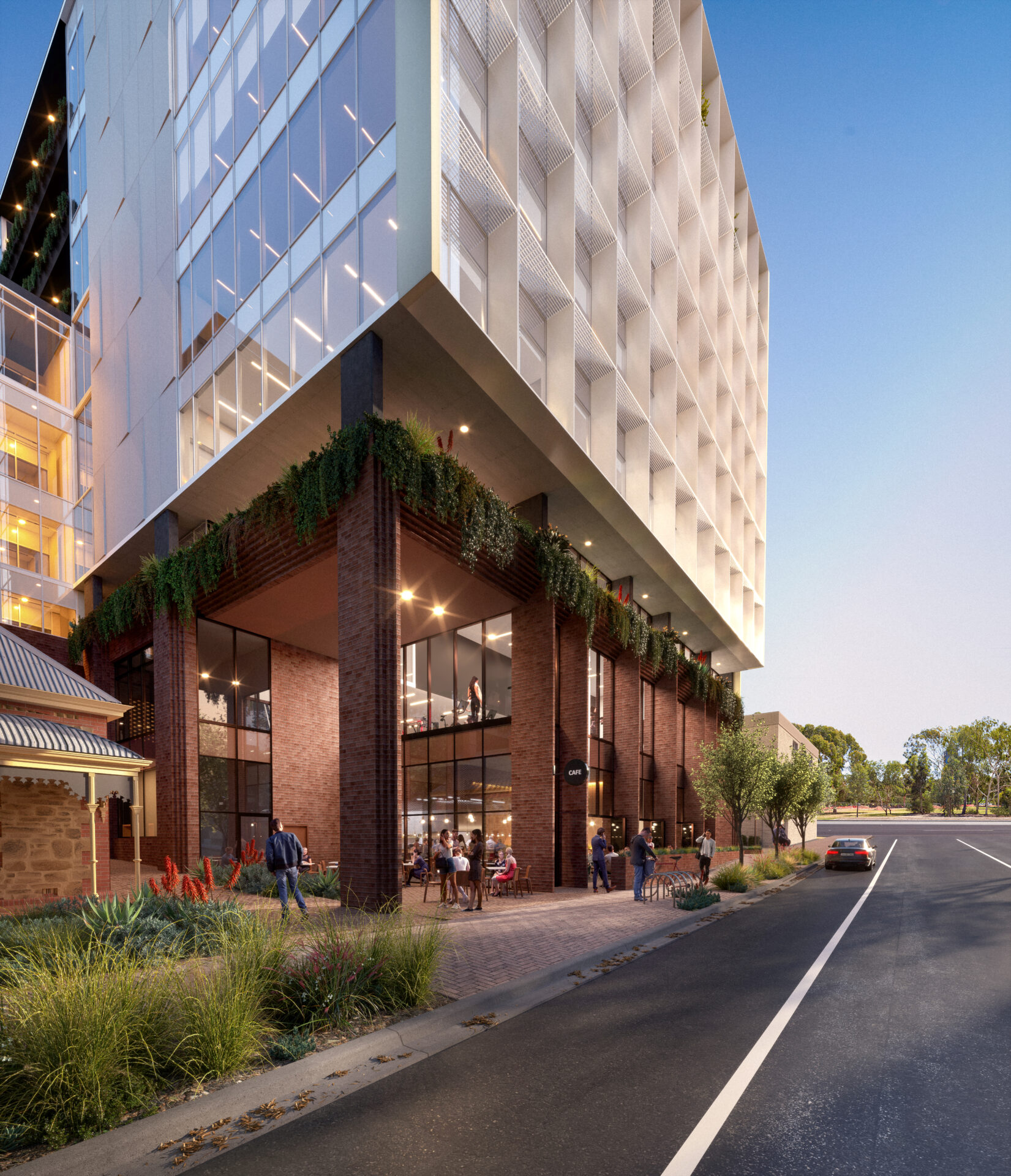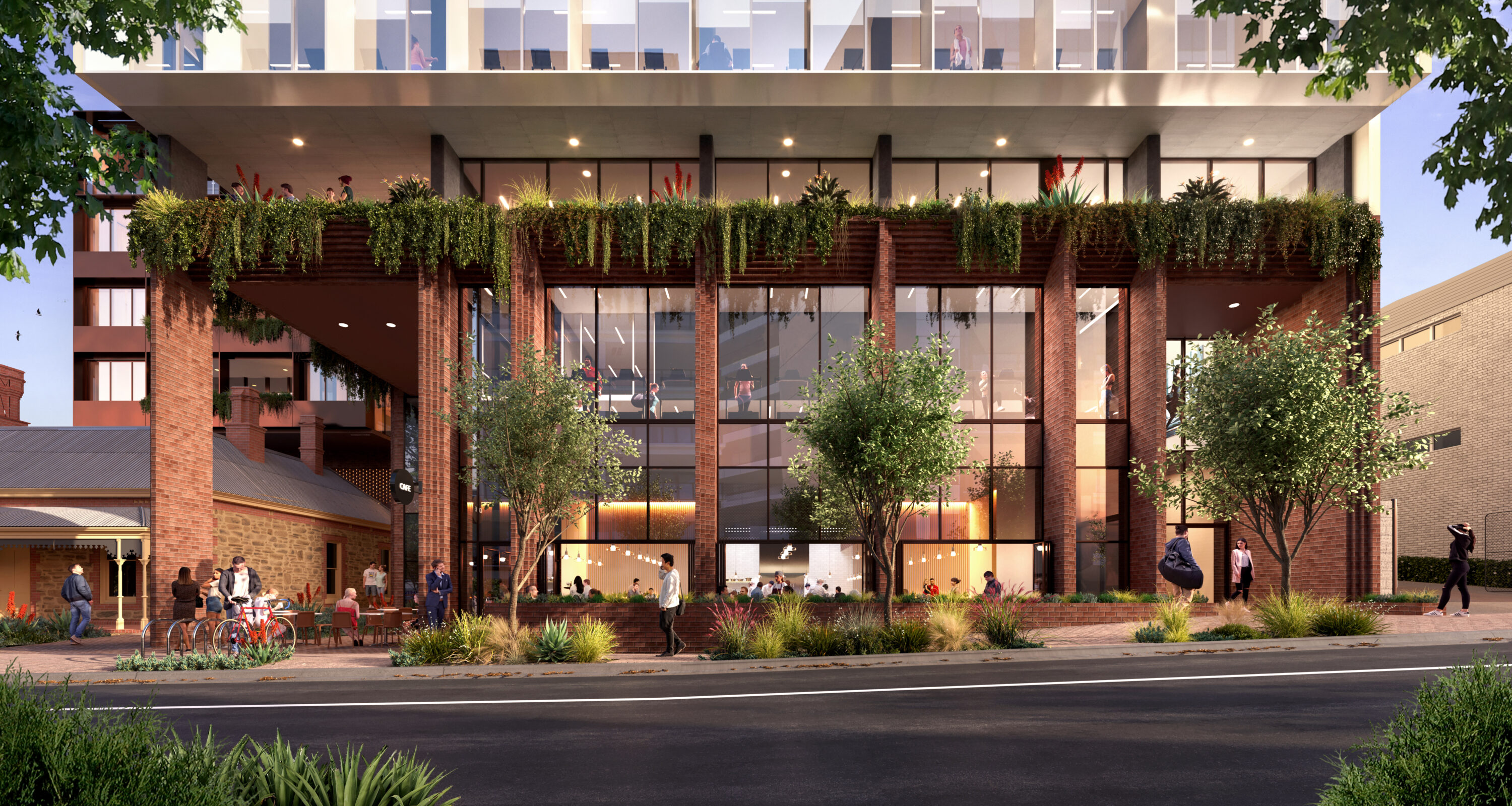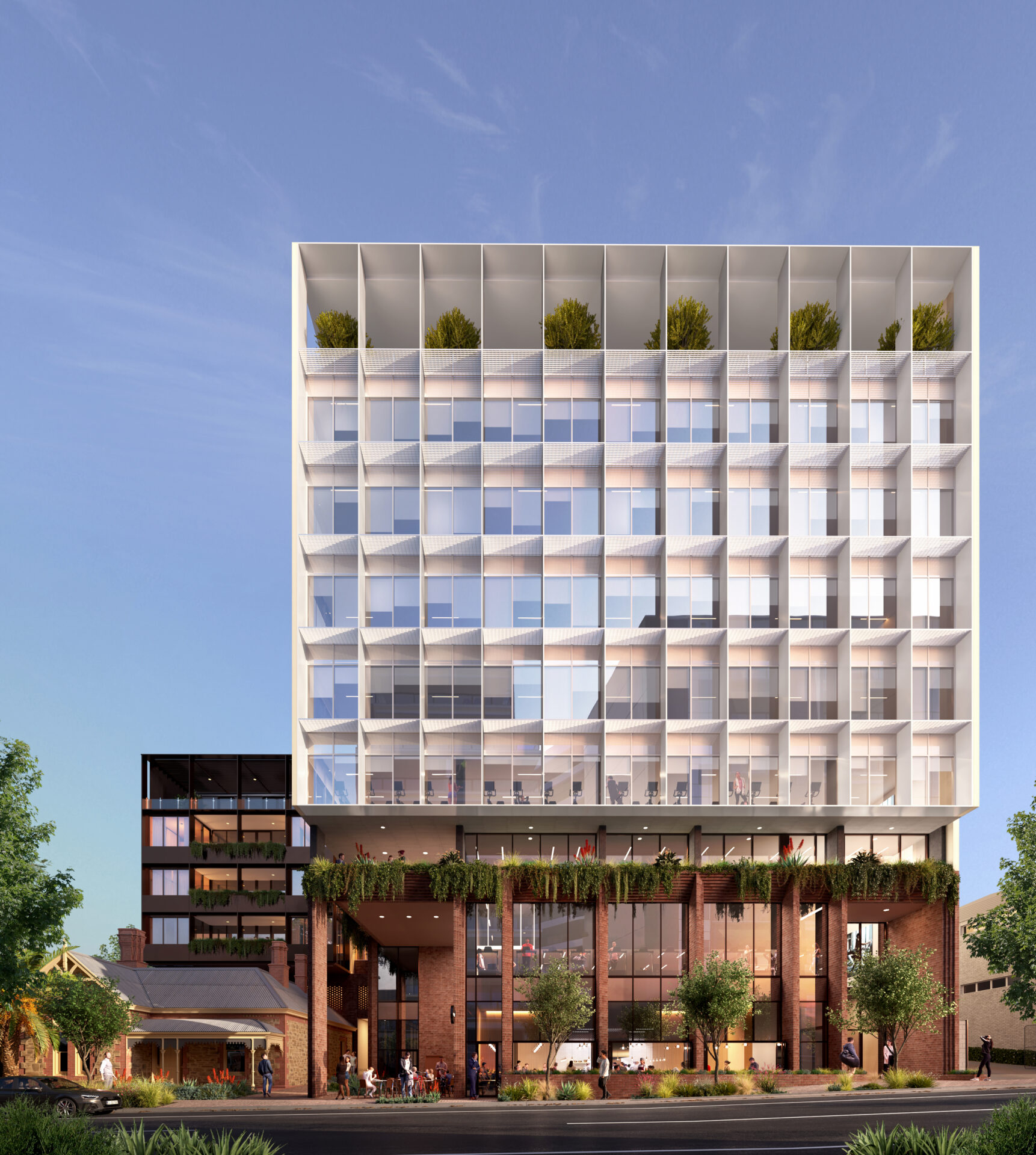 Studio Nine Architects have incorporated a heritage building and used materials that match Kent Town’s history and future. The design includes large windows and terraces, and offers flexible working spaces. There are end-of-trip facilities and the residential portion consists of high-end apartments close to the CBD.