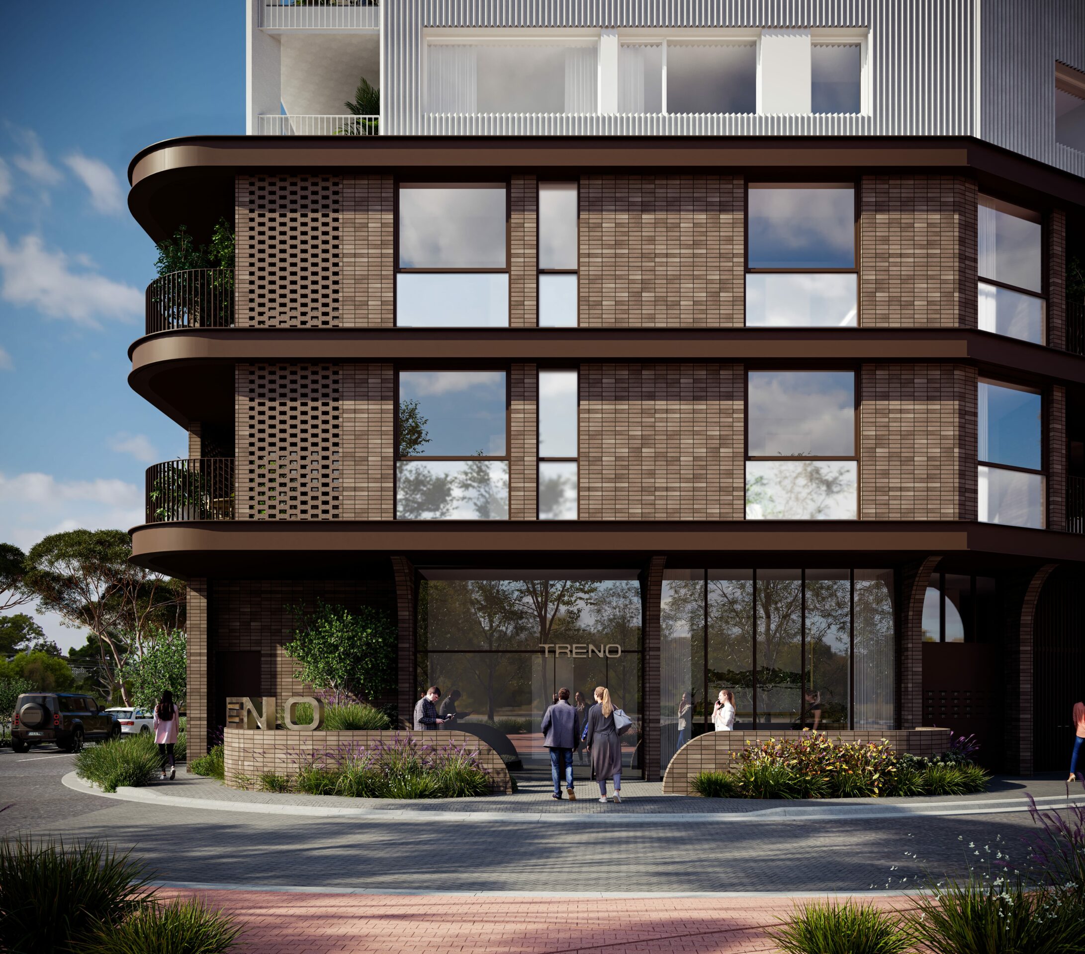 Treno offers a blend of urban and suburban lifestyles. This mixed-use development has both apartments and townhouses, balancing modern conveniences with the charm of Mile End. A highlight of the design by Studio Nine Architects is the communal rooftop terrace with city views.